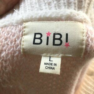 BIBI cardigan pink and white with hearts very soft knit size large hearts are 3D