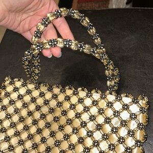 BIJOUX TURNER GOLD & BLACK BEADED MINI FAUX SATIN MINI BAG PURSE