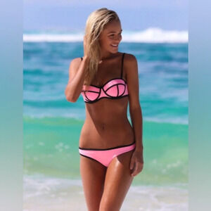 Bubble Gum Pink colour + black padded/push up bikini top, sizes S M & L