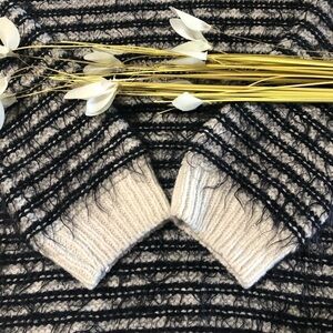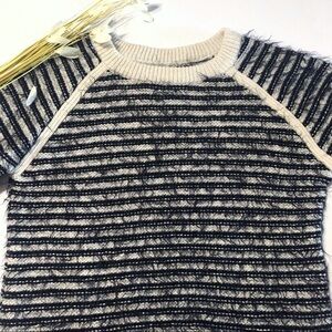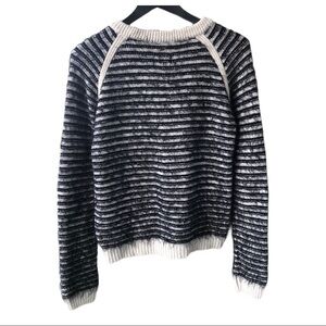 • Trendy eyelash crew neck sweater with a striped pattern by Billabong’s Designer Closet line