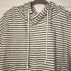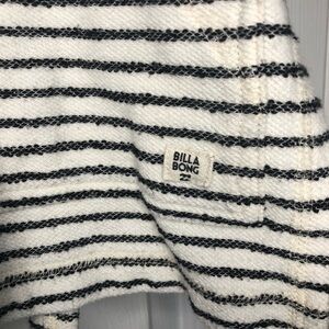 BILLABONG grey and white striped cotton hooded sweater large