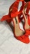 Gorgeous feminine red high heel shoes with a thicker 3.75” heel that is beautiful yet more comfortable than Stilletos.