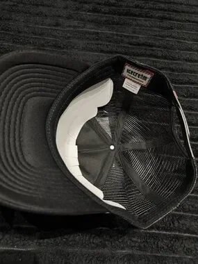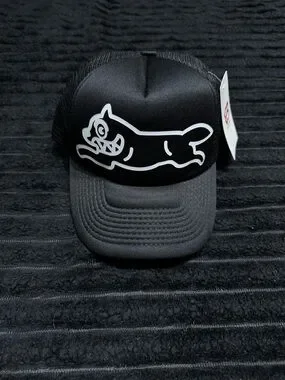 Stylish black trucker hat featuring a bold white cat graphic. Lightweight mesh back for breathability and a comfortable fit. Classic curved brim and adjustable snap closure for everyday wear. The black and white design adds a modern, versatile touch.