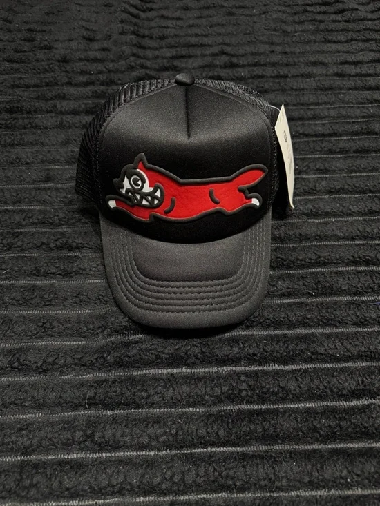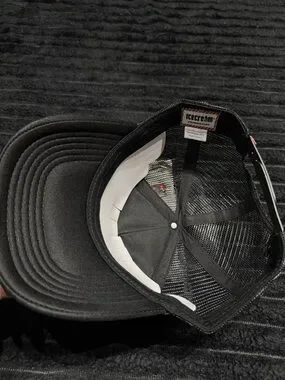 Stylish black trucker hat featuring a bold red cat patch. Lightweight mesh back for breathability and comfortable wear. Clean, modern design perfect for everyday casual use. Includes the label in the product listing.
