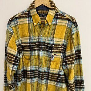 BILLIONAIRE BOYS CLUB Yellow Plaid Snap Down WEALTH Shirt sz LARGE L