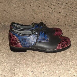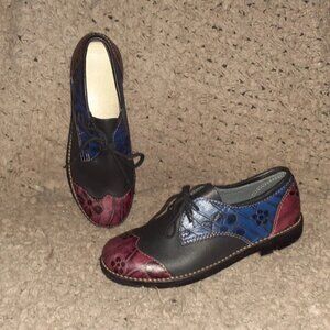 BILTRITE-Blue/Purple Leather-Floral Pattern-Wingtip Oxfords-Sz 6-NWOB