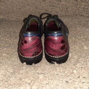 Size 6, measures 9" via insole, 9.75" via sole, 3.5" wide with 1" heel.