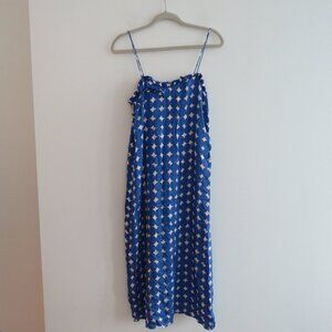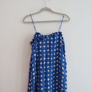 BIMBA Y LOLA Blue White Polka Dot Satin Ruffle Midi Dress - Women's Size XS