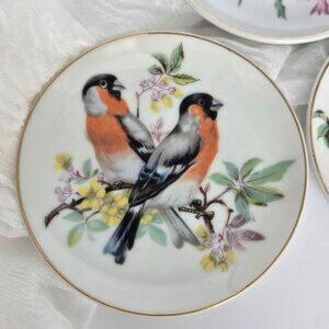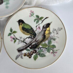 BIRDS! Set of 6 Vintage Bird Wall Plates – Mini Bird Plates with gold rim JAPAN