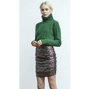 BIRGITTE HERSKIND Silver Metallic Brocade Ruched mini Skirt - Size US 6 NWT