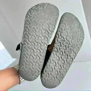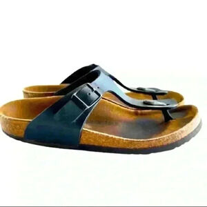 Birko-Flor BLACK LEATHER T STRAP SANDALS SIZE 34