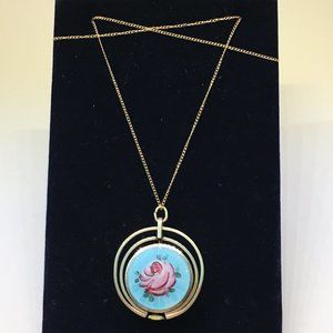 Vintage and extremely rare piece of jewelry from the year 1942, bought at Birks store. Gold plated, manual winding, Lacquered flower motif on 10k gold chain. this is an inestimable piece.