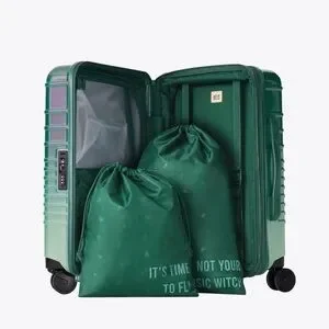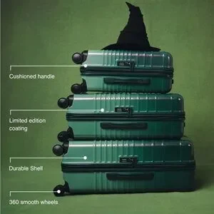 BÉIS x Wicked Collection! Here is the entire luggage set from their Wicked Collab in wicked green. The suitcases are a glossy, iridescent green with pink highlights. This was a LIMITED line that is completely SOLD OUT. The remaining items are: