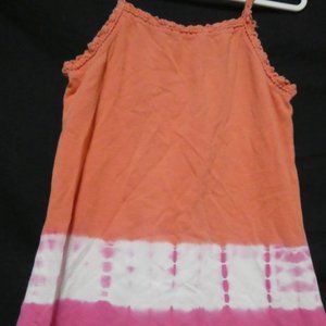 The upper section is orange, followed by a white band with a pink tie-dye look pattern, and completed with a solid pink lower section.