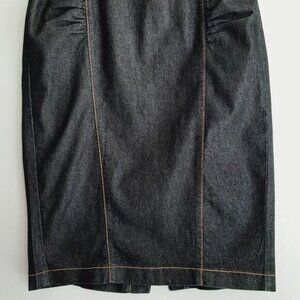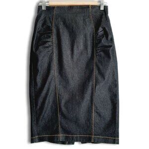 BISOU BISOU Y2K Blue Jeans Fitted High-Waist Pencil Midi Length Skirt Sz 6