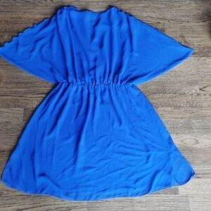 BISOU Bisou Pleated Sheer Blue Dress Swim Cover Large