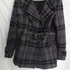 BIZZ GIRL, size small, plaid pea coat with belt, prestine condition