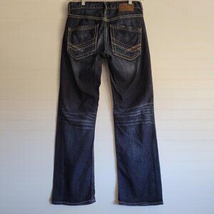 BKE Mens Jeans Size 29R Jake Dark Wash Straight Distressing Heavy Stitching