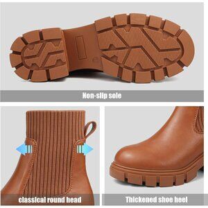 BKWHDAY Women's Brown Chelsea Platform Ankle Boots Fashion Chunky Heel
