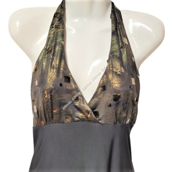 BLACK And Metallic Gold Sequined Halter Top Size L