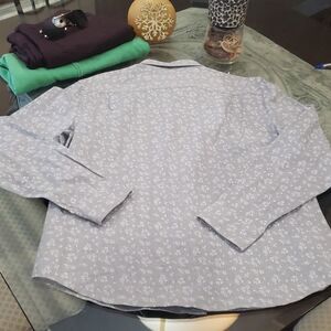 This os so beautiful shirt, my favourite beautiful light gray and white pattern casual or dressy shirt to show some nice style! Size L true to size !