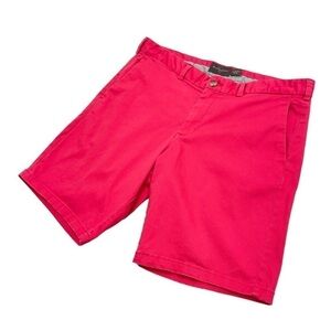 Bermuda shorts. 2 pockets on the front/ side and 2 pockets on the back. Closure with zipper and button. Stunning pink colour. Photo with my hand reflect the true colour. 100% cotton. Labeled size 34 but runs slightly large. Please see measurements. Good pre owned condition, show some light signs of wear. No flaws