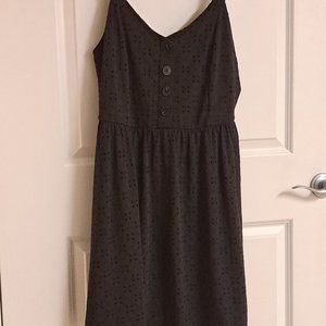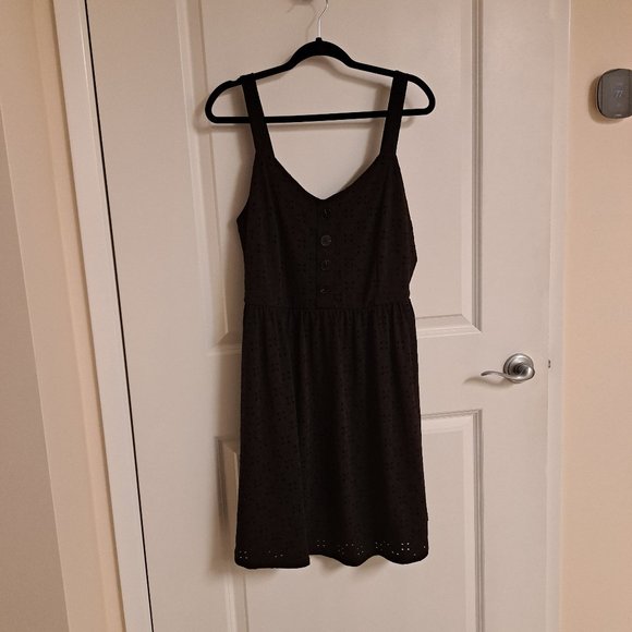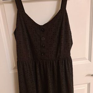 Cute black eyelet sundress fully lined with decorative buttons on the front of the dress.Its XL fits more like a Large, but has an elasticized waist. And full elasticized back....Never worn..