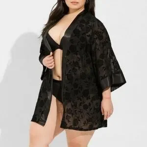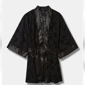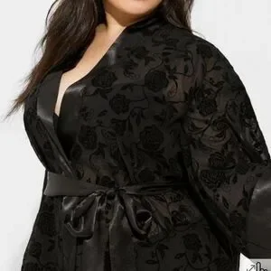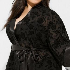 🆕️ BLACK FLOCKED ROSES MESH SHORT ROBE