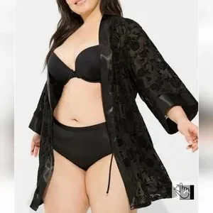 GORGEOUS MESH LINGERIE ROBE WITH FLOCKED ROSE DESIGN