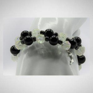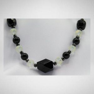 A NEW and HANDMADE classy black & frosted clear jewelry set. Includes necklace, bracelet and earrings. Each piece is hand-made and designed by me. I only make one of a kind. I use a wide variety of beads from crystals, glass and semi-precious stones all to create unique and stunning pieces. Pieces may contain all or some of the types of beads mentioned.