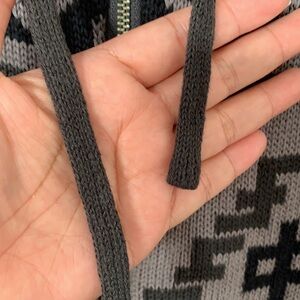 BLACK & GREY KNITTED ZIPPED HOOD SWEATER JACKET SIZE M