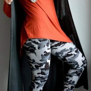 BLACK & Gray Bat Print Camo Yoga Full length Leggings Size 12-20 NWT