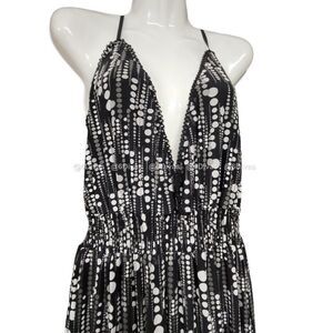 BLACK Grey Polka Dot Spaghetti Strap Long Maxi Dress- Small Medium