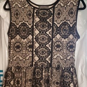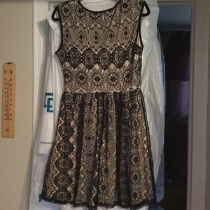 Cute cocktail dress. Great to pair with opaque stockings for fall. Stops above the knee. If you are a curvy girl it will be a bit shorter.