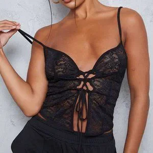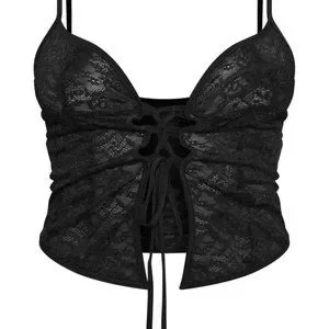 Get ready to look effortlessly chic in this top doll. Featuring a black material with lace detailing and a tie-up design, we're obsessed. Just add black bottoms, high heels and a blazer to complete this flawless combo
