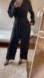 BLACK LONG SLEEVE JUMPSUIT ZIPPER BUTTON WIDE LEG POCKETS STRETCH WAIST TIE BELT
