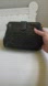 Black mesh metal mini evening bag with single strap & snap closure, rigid frame & gold link chain with faux leather looped through the links similar to a very famous designer! Inside clean fabric interior with zipper pocket. There is some slight wear to the strap closure as shown in photos which could easily be covered if necessary.