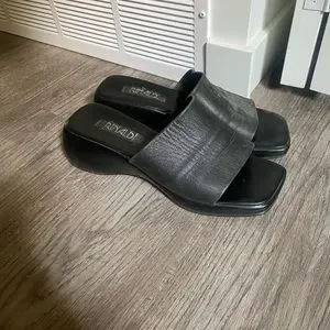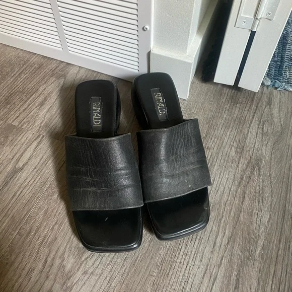 🛍black heeled platform sandals with leather strap