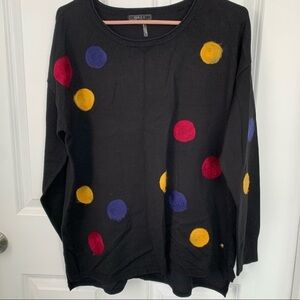 BLACK POLKA DOTS EMBROIDERED SWEATER WOMEN SIZE L