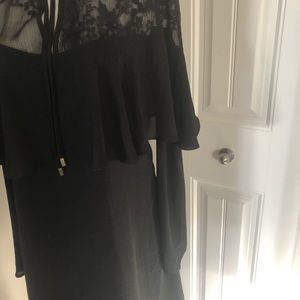 NWT FLOWY BLACK ORGANZA RUFFLE & LACE SWING DRESS WITH LONG FLOWING POET SLEEVES.