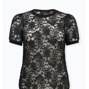 BLACK SHEER LACE PUFF SLEEVE TEE