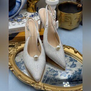 🆕 BLACK SUEDE STUDIO 🧿 NWOB Reina 100 White Crystal Slingback PumpsSz 36 US5.5