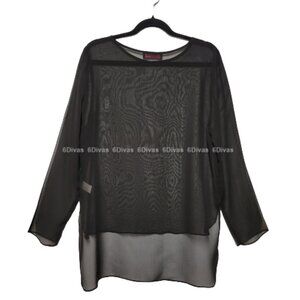 BLACK Sheer Top See Through Blouse Top or Cover-Up- Size L