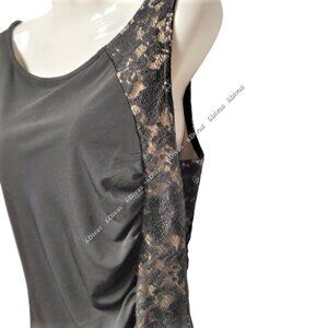 BLACK Sleeveless Dress With Gold Trim And Black Lace Accent Size L