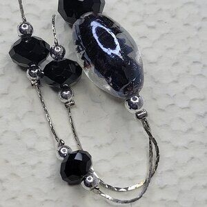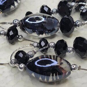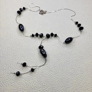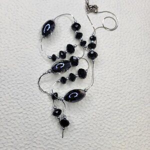A divine necklace featuring ravishing black faceted glass crystals in a silver tone setting.