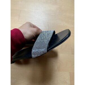 * crystal-embellished vamp strap adds class and sophistication to a simple slide sandal.