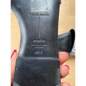 BLACK Suede Studio Women's Slides "Alexandra" Sandals Flats Stones