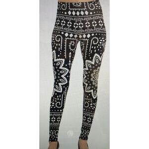 BLACK & White Mandala Print Full length Leggings Size 0-10 NWT