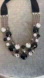 BLACK clear crystal rhinestone clustered multi layered chain ribbon necklace