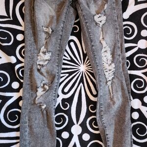 BLACK distressed acid wash stretchy ripped jeans punk emo y2k